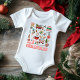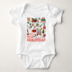 Min Första Jul Söta Retro Bilder Baby Body Dräkt Baby Flicka Baby Pojke Baby Body Dräkt har texten "Min 1:a jul" i modern typsnitts typografi med söta inslag som en lastbil med julgran, ful jultröja, julkulor, presenter, julstrumpor, järnek, julgran och dekorationer. Perfekt julpresent till en babyflicka eller babypojke. Skapad av Evco Studio www.zazzle.com/store/evcostudio