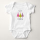 Den här bedårande bodysuitten med frasen "min första jul" har tre söta träd i rosa, lila och grönt.
