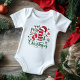 Min första jul typografi söt jultomte mössa Baby Girl Baby Boy Baby Ensemblen har texten "Min 1:a jul" i modern typsnitts typografi med en jultomte hatt, järnek och småbarn fotavtryck. Perfekt julpresent till en babyflicka eller baby pojke. Skapad av Evco Studio www.zazzle.com/store/evcostudio