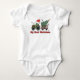 Min första jul söta farmtraktor Baby Body T-shirt Jul Baby Flicka Baby Pojke Baby Body T-shirt har texten "Min första jul" i modern typsnittsstil accentuerad med en traktor som drar en släde med en julgran. Perfekt julpresent till en babyflicka eller babypojke. Skapad av Evco Studio www.zazzle.com/store/evcostudio