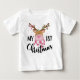 Min första julklapp Reindeer Flicka Baby T-Shirt har texten "Min första jul" i modern manustypografi som accentueras med en söt renare som bär en rosa scarf och dekorationer i sina tändare. Perfekt julklapp till flicka. Skapat av Evco Studio www.zazzle.com/store/evcostudio