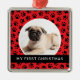 Gratulera till hårigets familjs juldebut med den här vackra personligen som prydnadsföremål! Festiv design har en mönster i tass avtryck, ett foto av din hund (eller katt) och modern anpassningsbar "Min första jul"-text. Röd, svart och vit färg. Fototips: skörd fotot i fyrkantigt format innan det överförs till platsen.