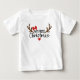 Min första jul typografi Enkla hjorthornsbåge Babyflicka Baby T-Shirt har texten "Min 1:a jul" i modern typsnitts typografi med accentuerade enkla hjorthorn, en röd båge och en röd näsa. Perfekt julklapp till en babyflicka. Skapad av Evco Studio www.zazzle.com/store/evcostudio