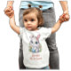 Teckning av en vit bunny med stort blått ögon med blått Påskägg. Namn Jennifer är skriven i ett vackert pastellkorallatets färg typsnitt och bör bytas ut mot det barn skjortan är till för. Under namn är budskapet "Mitt första Påsk" som kan ändras till spelar ingen roll år lämpligt. Det finns också i samma färg som den andra texten. Denna t-shirt finns i andra storlekar, från 6 månader till 24. Du kan också ändra skjortan färg, men se till att du väljer processaa "vid utskrift, vit underbas" eller så förblir färgerna på bilden inte säker.