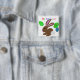 Mitt första Påsk skrev i olika färg. Cute Påskhare med stort rosa öron och bushy svan. Festive blue dotted-ägg, grönt stripe-ägg med ord Bra-ägg, skrivet med vit text. Anpassa Baby Namn i röd text eller lämna tom. Originalteckningsutkast © 2016 TamiraZDesigns.