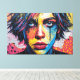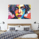 Otis Porritts digitala konstverk presenterar en fängslande närbildsporträtt, sprängande med en elektrifierande palett av het rosa, levande gul och intensiv blå. Motivets ansikte framställs med djärva, kontrasterande färgblock och en dynamisk, pointillism-liknande textur, vilket skapar en modern popkonst-estetik. Genomträngande blå ögon håller betraktarens blick, medan en skarp svart strimma rinner ner från ett öga och tillför en gripande touch. Det livfulla, nästan kaotiska energin i det mångfärgade håret och den prickiga bakgrunden förstärker verkets slående visuella inverkan.