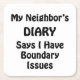 För sarkasmen älskare i oss alla. Kolla in den här vitboken "Min grannes dagbok säger att jag har gränsproblem" på kläder och gåvor.