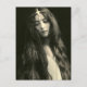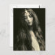 Vintage fotografi av en ung kvinna med mycket långt hår, en allvarlig blick på hennes ansikte när hon ser nedåt och ett litet metall huvudband