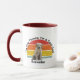 En vinröd keramisk kaffekopp med vit text som humoristiskt läser, "Min hund tycker att jag är cool Pappamugg."