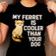 Visa upp din kärlek till iller med en nypa humor i denna söta design med texten ”Min Iller Är Coolare Än Din Hund”! Med en söt tecknad iller och fet, lekfull bokstavsstil är denna t-shirt perfekt för stolta illerägare som vill göra ett statement. Bra för avslappnad klänning, husdjursaktiviteter eller som present till exotiska husdjursälskare!