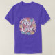 T-shirt-konstruktionen har en mängd levande, överlappande hjärtan i olika storlekar och skuggor av rött och rosa, som symboliserar kärlek och kärlek. Mittpunkten i mönstret är eleganten "Mitt Kärlek" skriven i ett romerskt skript som blommar upp sömlöst med hjärtat mönster. Konstruktionen utstrålar värme och passion, skapar den perfekt för att uttrycka kärlek på ett snyggt, men ändå hjärtligt sätt.