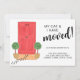Är du och din flytta hemma? Det här flytta-annonskortet har en röd dörr- och krukväxt med kattunge tass avtryck och snyggt. Du kan ändra numret på dörren till ditt nya nummer. Enkelt anpassade. Ursprunglig vattenfärg © Michele Davies.