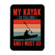 Fantastisk-kajakande design T-shirts, poster, säckar, planerare och mer med en silhouette-kayaking på en flod med text som lyder Min Kayak ringer och jag måste gå! Den här färglösa kayakdesignen är underbar för kayakern som inte kan få tillräckligt med tid på vatten kayaken!