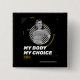 Den här underbara illustrationsknappen i färg som innehåller texten "Mitt kropp mitt val" och en vintage bild av en kvinna som leker är perfekt för kvinnor som är för sitt val. Ta den här designen som en födelsedagsgåva till flickvän, bästa vän, syster som tror att abort är hälsovård. Utformningen är också underbar till jul.