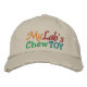 Namn din Hund! Min Shih Tzus (Big Jake, Södra Sadie och Gutsy Gogee) tuggar inte på mitt lock. De går vild när jag sätter på den, för det betyder att man går på en promenad. Om jag vill bära det bara för att göra trädgårdsarbete, måste jag smyga ut hatten under min skjorta.