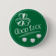 Bära din lyckliga Lycka till Bunco-knapp till alla dina Bunco Girl's Night Out Bunco Nights. Grönt och vit design har en lyckad vintage stil-grafik av en schamprock och tre vita Bunco-dice. Fungerar bra med marschen Bunco Tema.