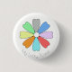 En cool rund knappnål med en blomma (olika färger på varje kronblad) och frasen 'Min lyckliga blomma'. Bra val för dig eller som present!