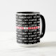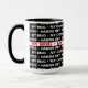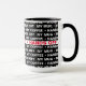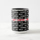 För den seriösa kaffedrickaren. Mugg har en upprepande mönster av texten som lyder "MY MUGG ・ MY COFFEE ・ HÄNDER OFF" Kloket och hantera kom i ditt val på 5 färg, som visas här i svart. Du kan också anpassa den svarta bakgrunden färg bakom texten.