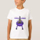 En gullig design som presenterar en raccoon, stenigt le verkligt stort med pearly vittandproteser i en helikopter, som han landade precis på en landning, vadderar i gräset. Helikopter vid Lagalerie de Jackie