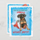 Inbjudan alla dina vänner till en Underbar Julfest i Doggo i julas med inbjudningarna som visar en söt minister Pinscher-marionett sitta i en julhatt mitt i ett gäng snöflingor. Ha en Lycklig Howliday Party!