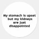 För sarkasmen älskare i oss alla. Kolla in den här vitsen "Min stomach är uppsatt, men mina njurar är bara besvikna"-designen på kläder och presenter.