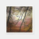 En lugnande naturutformning med en vacker solnedgång, träd och en fågel som flyger genom luft.