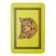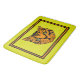Den här kuggade, halkfria badmattan har ett par söta tecknad stil, tiger unge ansikte i orange och svart tiger på en ljus puckbakgrund (gult-grönt) med alternerande svart och orange gräns med en bred puckyttre gräns.