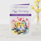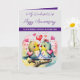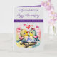 Till min underbara fru/Lycklig-årsdag, Färg lila och grått/med söt love birds med röda kärlek hjärtan. Anpassa med ett meddelande.