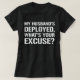 När hon maken utplaceras, har en militär fru varje rakt till att vara ett lite sassy, när han frågar vad någon annan ursäkt är. Denna är en underbar skjorta för en US-armé, US-marin eller US-marinkorpralfrun. Se till att beställa din sassy make är den utplacerade militära skjortan per formatet som är större för en lös eller påsig passform.