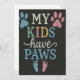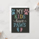 Chalkboard-stil-design med det roliga citatet "Mina barn har Tassar", med färgstarka fotavtryck från tass avtryck och baby. Perfekt för hund, katt mammor och alla djurälskare som ser sina sällskapsdjur som familj. Underbar för bärbara datorer, klistermärken, kort eller presenter.