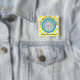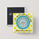 Min första Heliga-knapp, Anpassade med barnets namn. Gult polka dots med tealcentrum och kor.