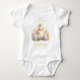 En Cute min första bodykostym Påsk baby med söt chick baby, färgstarka Påskägg, blommor och löv. Texten är i gultens versalteckensnitt och kan ändras vid behov.