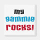 Mina Gammie Sten T-shirts, kort, klistermärken, tote bags, magneter, knappar och andra artiklar med en svart, blå och röd textdesign. Mina Gammie Sten-objekt är ett underbart sätt att visa kärlek för ditt speciella spel!