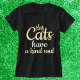 Firar kattdjur kärlek med "Mina katter har en bra Personlig, en fin svart T-Shirt." Den här snyggten ser till att man blandar lyxtypografi, typsnitt, citattecken, jag kärlek, min katt, roligt, söt, galen katt dam, roligt, text, modern, enkel, minimalistisk coola med hjärtligt humor, perfekt för fall och vinter. Den är utformad med premiumväv och modernt typsnitt, och är mångsidig för avslappnader eller mysiga dagar. En must-over för kattälskare, det är en idealisk gåva som kombinerar värme, med och personlig charm!