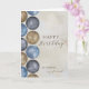 Det enkla kortet för make på hans födelsedag har vattenfärgcirklar i maskulint färg av blått, grått och brunt på en nödlidande solbakgrund.