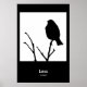 Den här poster har en silhuetterad fågel på gren. Välj storlek och papper som kostym din dekanter