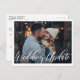 Modern elegant bröllopsuppdatering med ett foto och ditt meddelande på baksidan. Perfekt för att låta din familj och vänner veta att du minskar din gästlista.