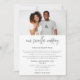 För de tillfällen då en socialt distanserad bröllopsceremoni är nödvändig och du vill låta dina gäster veta att du minskar ner och inbjuder dem till livesändningen , har denna moderna samtida design ditt foto högst upp och en stilren handskriven stil med Vårt Mindre Bröllop underst. Resten av texten kan du enkelt anpassa med dina detaljer.