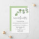 För de tillfällen då en socialt distanserad mindre bröllamsceremoni är nödvändig och du vill låta dina gäster veta att du ska hålla det litet och inbjuder dem till livesändningen, har denna moderna design en elegant gren med eukalyptusblad högst upp och modernt handskrivet stilfullt typsnitt med Vårt mindre bröllop underst. Resten av texten kan du enkelt anpassa med dina egna detaljer. Du kan också ändra den koordinerande gröna bakgrundsfärgen på baksidan till en annan färg om du önskar via alternativet Anpassa ytterligare.