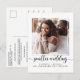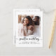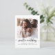 Om oförutsedda omständigheter kräver att du förminskar och minskar antalet gäster på din bröllopsfest kan du låta familj och vänner veta att din kärlek och bröllop kommer att fortsätta men nu i mindre skala med detta lilla nedskalade bröllopskort. Framsidan visar ditt favoritfotografi i en utskuren fyrkantig ram och "Litet bröllop" skrivet med ett trendigt skrivsätt med svängar, och under kan du anpassa dina förnamn och tillkännagivandet om det mindre bröllopet. På baksidan kan du anpassa ditt meddelande mer i detalj och lägga till eventuella virtuella bröllopsevenemang och kommande firanden.