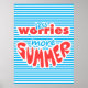 Mindre bekymmer, mer sommartid, rolig poster, typografi poster typografiskjorta, - Spela med Rand-serien, blått och rött rand, typografi poster, typografi t-skjorta.