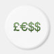 mindre penningsymboler Pound, US-dollar i euro Magnet