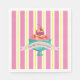 Den här säkra designen har en bakgrund av rosa, vitt och gult rand, med en glass Sundae i mitten. Det finns chokladbrun banderoll med texten "Less Talk More Ice Cream!"