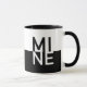 Anpassa den här contemporaryn svart och vitt mugg. Den här rena moderna designen har ord "MINE" på ena sidan med plats för ditt namn på den andra.