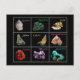 Virtuell mineralinsamling - svart vykort med nio färgstarka kristallprov.