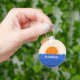 Fin elegant nyckelring med minimalistisk havsscen och sol. Anpassa den med namn eller text. Denna enkla illustration fångar den fina skönheten hos en sol-utställning vid havet. Vågar är ett enkelt böjt linjer, som börjar från grund i bilden och sträcker sig uppåt mot horisonten. Olika skuggor av blått i riken ökar havsdynamiken. Sol är en stor cirkel som glöder i en lysande orange, som sjunker ner i havet. Sol och havet vinkara framkallar vintage vibes och skapar stillastående scener och elegant.