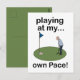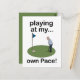 Mini Golf Minigolf Playing At My Own Pace Golfer Postcard originally designed by Nisha Prabhu. Send a fun and relaxed message with our Mini Golf Minigolf Playing At My Own Pace Golfer Postcard! Featuring a charming illustration of a golfer enjoying the game at their own pace, this postcard is perfect for golf fans, friends, or anyone who appreciates a laid-back vibe.