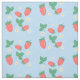 Ett tygeremuster som har ett förtjusande och lekfullt mönster med spridda små jordgubbar mot en mjuk, himmelblå bakgrund. Jordgubbarna är avbildade i en livfull röd färg med gröna blad och är utspridda med små, ömtåliga vita eller ljusgula blommor, vilket ökar charmfaktorn. Det övergripande intrycket är glatt, fräscht och sött, vilket gör det idealiskt för diverse barnprodukter såsom kläder, sängkläder eller dekorationer till barnkammaren.