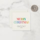 De här små helgdagskorten är moderna små anpassningsbar med trendig typografi som läser GOD JUL i en snyggt regnbågsdesign med namn och ett meddelande på baksidan (ta bort malltexten om ingen förtryckt anteckning behövs). OBSERVERA om du är i USA: 2,5-tumskortet är mindre än USA:s minsta portokrav, så välj en större storlek om du tänker skicka dem.