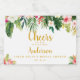 Våra mini-mousserande vin-etiketter är perfektens sätt att tacka era gäster för att de har duschat bruden! De har tropiska hibiscus-blommor och tropiska löv som är handmålade med vattenfärger innan de blir digitalt perfekta. Anpassa nu med dina detaljer.